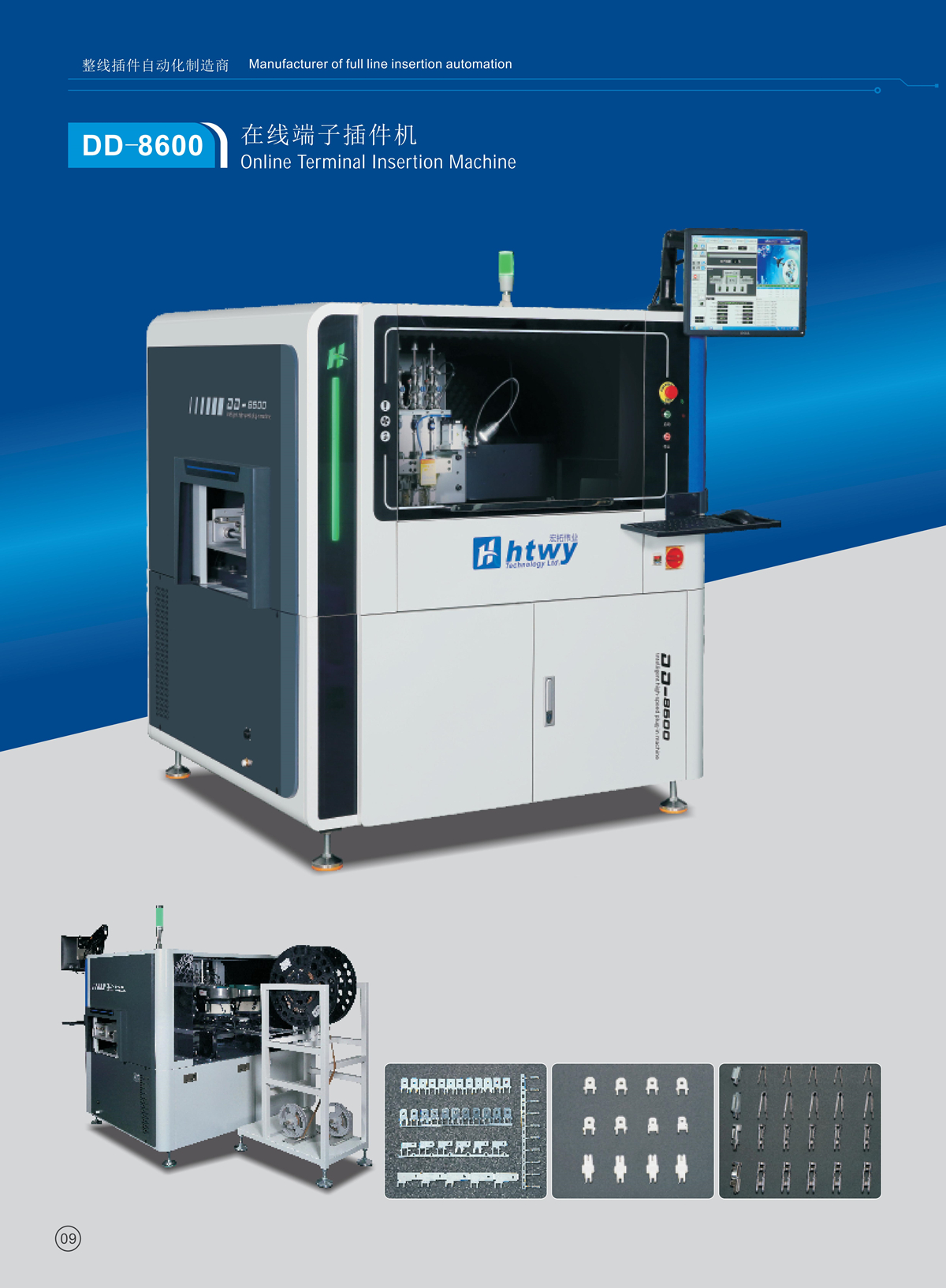 端子插件機根據不同產品按設定的程序將各種規格的端子元件自動插入在印刷電路板(PCB) 上, 具有彎角固定以及檢測功能,達到高速度、高精度、高穩定的插裝效果。